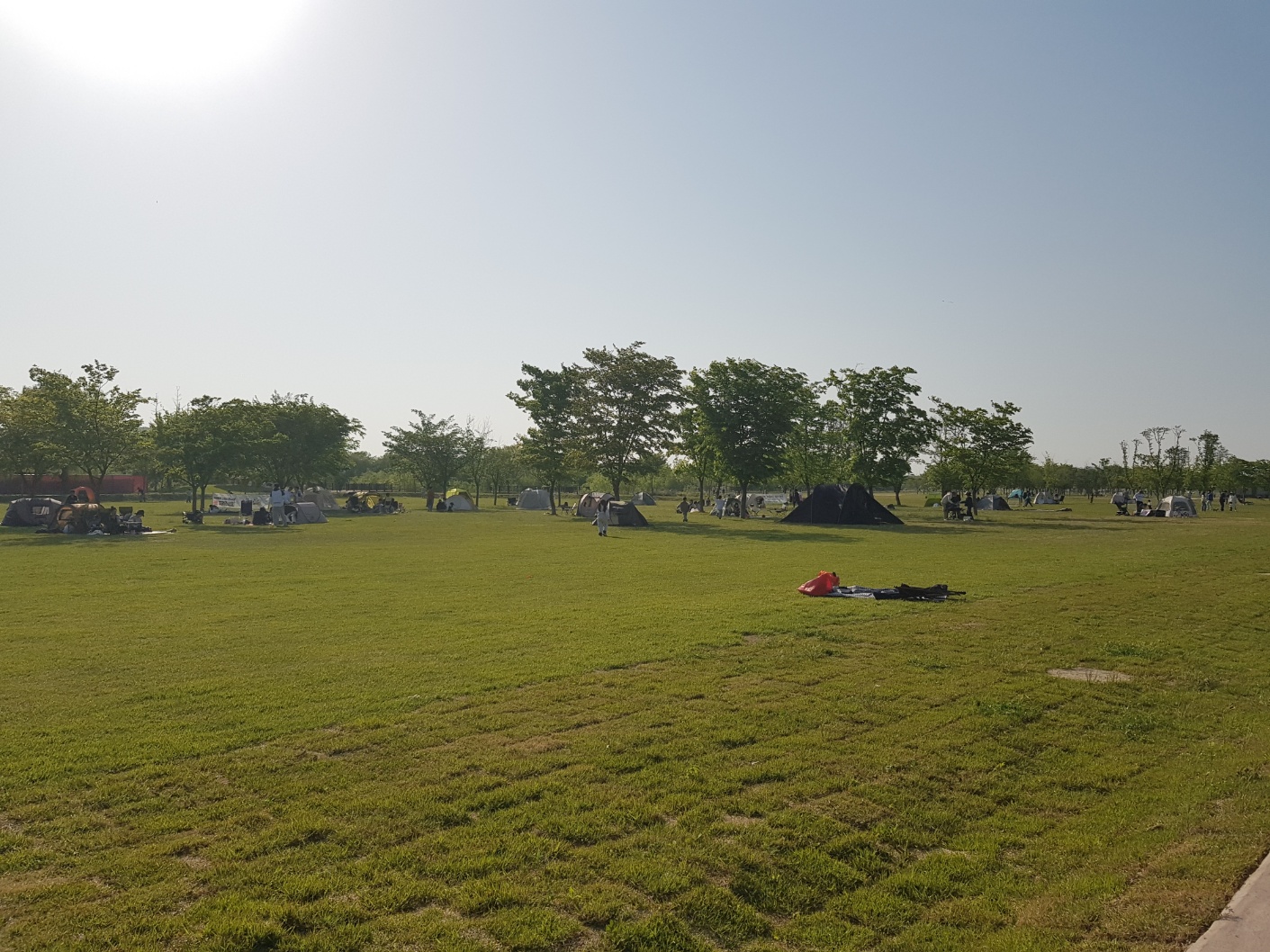 주차 후 공원으로 들어서면 곳곳에 돗자리를 펴고 쉬거나 소형 텐트를 설치해 피크닉을 즐기는 사람들이 많습니다. 가족 단위 방문객은 물론, 반려견과 함께 온 보호자들도 흔히 볼 수 있어 활기차면서도 따뜻한 분위기를 느낄 수 있습니다.